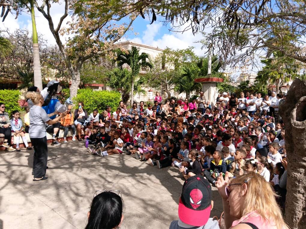 En conversación con Malawy Capote Directora de la Compañía, comentó a nuestra redacción digital: «… después de un tiempo bastante prolongado de no podernos presentar, hoy aquí han acudido las escuelas, los niños públicos en general, que nos quiere, que nos sigue, y hemos pasado una mañana inolvidable. Hoy precisamente celebrando el Día Mundial del Teatro para Niños y Jóvenes, y mañana, 21 de marzo, se celebra el Día Internacional de la Marioneta. También celebramos el Día del Síndrome Down, la llegada de la primavera, la poesía y el Día de la Alegría. Entonces creo que son más que razones suficientes para estar felices. El público creo que agradece muchísimo, creo no, estoy segura que agradece muchísimo cada vez que los cuenteros, con esta alma tan grande que tenemos, llevamos a la escena la alegría, la felicidad (…)»
