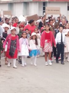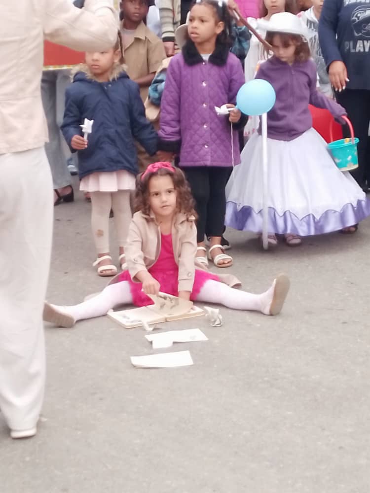 San Antonio de los Baños, Artemisa, Cuba. –  Con la representación de los cuentos de La edad de oro, cada centro educativo de san Antonio de los baños desfiló por avenida Vivanco hasta esquina del parque del Humor.