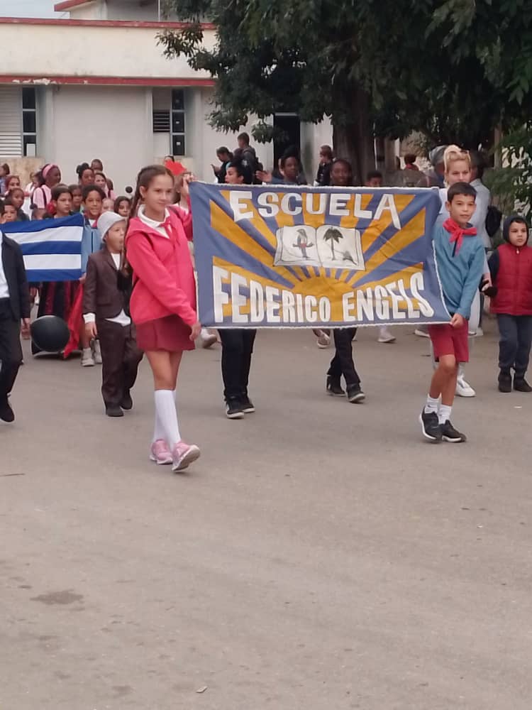 Con los directivos del municipio al frente , saludaban a todos los estudiantes de escuelas primarias y secundaria básica.